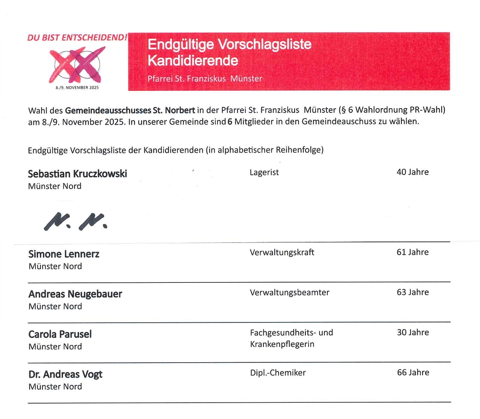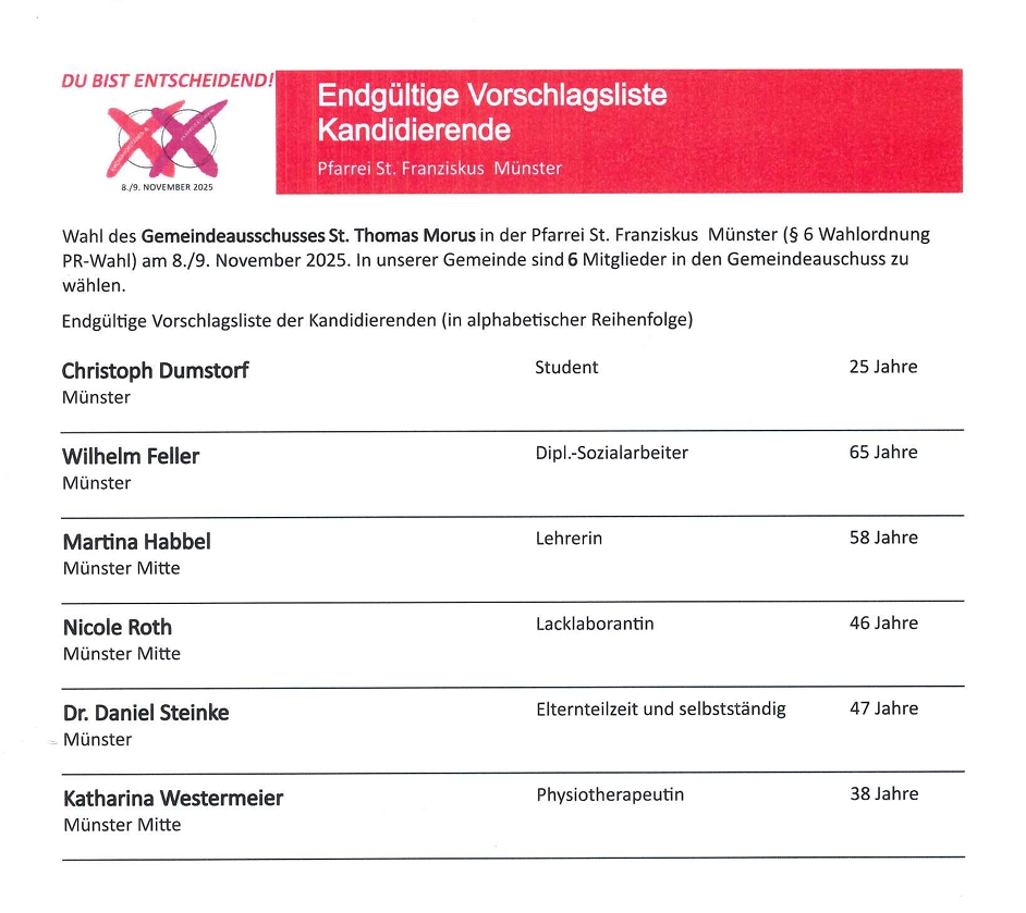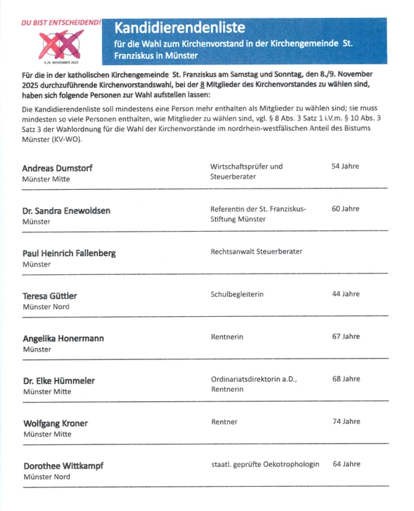 Für den Kirchenvorstand St. Franziskus kandidieren: